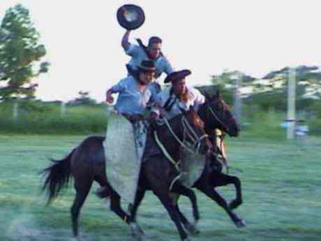 Durante esta escena un jinete monta sobre otros dos,dejando atrás su caballo.