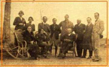 De derecha izquierda: parados: Ricardo Güiraldes, Alberto Mendioroz, E.Acosta, Juan Carlos Dávalos, y otros jóvenes salteños entre los que se encuentran la hija de Castellanos Elvira Castellanos de Uriburu y Dña. Celesia Elena de Dávalos. sentados: Castellanos junto a dos damas salteñas.