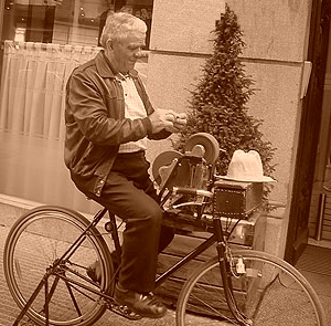 Terminaba el trabajo en esa cuadra, y reiniciaba su caminata empujando la curiosa máquina que estaba provista de dos ruedas bajas delanteras. Alejábase aproximadamente una dos cuadras del lugar en que había prestado servicios y nuevamente hacía sonar su pregón de brusca escala musical, que pronto fue la característica del oficio.