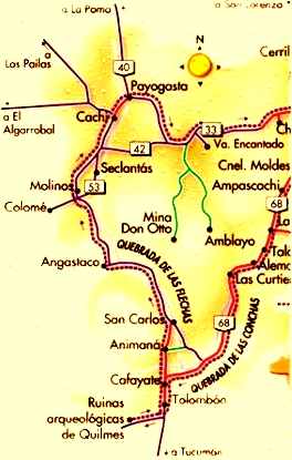 Con vehículo propio o alquilado, se desvía en el kilómetro 70 de la ruta a los Valles Calchaquíes (hay señal). Desde allí hay 45 kilómetros hasta Amblayo. La cuesta de Isonza es empinada y angosta pero firme, y hay que salvar varios vados tributarios del río Amblayo. Combustible en El Carril y en Cachi.