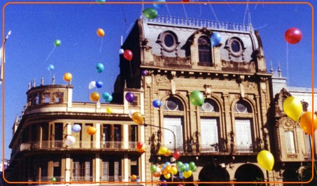 La fachada, dividida en tres niveles correspondientes al ingreso, la planta noble y la mansarda, concilia los lineamientos del academicismo francés en los dos niveles superiores, con la recova inferior, constituida por tres grandes arcos neorrenacentistas que no sólo no restan armonía al conjunto, sino que lo integran con su entorno circundante, de neto tono hispánico e italianizante.