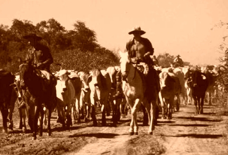 Junto al fogón los gauchos vigilaban contando casos y cuentos, y de rato en rato hacían una recorrida. Por las mañanas, al alba, entre los mugidos del ganado se reiniciaba el camino interminable, hasta que se salía por la zona de Metán al camino abierto, polvoriento y ancho, que mostraba la cercanía de la meta. Se vendía el ganado y el patrón hacía efectiva la paga convenida en el bar más importante del pueblo.