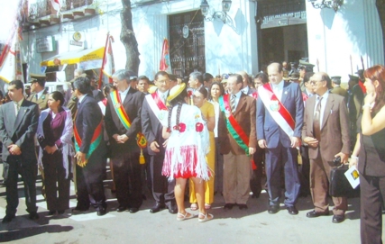 Frente a la Alcaldía de Tarija. Se encuentra el Vice Presidente de la Nación Boliviana