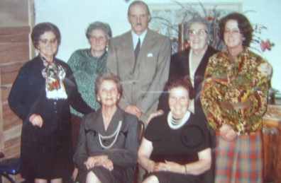 De izquierda a derecha: Ida, Teresa, Luis, Adelaida, Nelly - Abajo: Yone y Fany