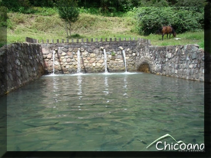 La pesca se realiza en dos represas de agua de vertientes, limpia, fresca y cristalina.