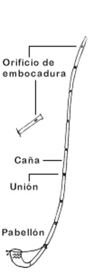 Puede ser un tubo directo con pabellón, produce técnicamente tres sonidos dados en forma de escala DO - MI - SOL, que son los sonidos naturales de los tubos abiertos.
