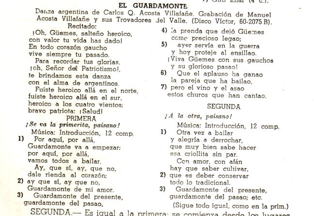 Esta danza argentina hoy poco difundida , fue apreciada en los ambientes nativistas, es una creación personal, de Carlos Acosta Villafañe.