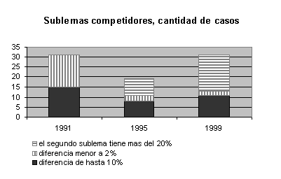 [16] En julio del 2001 se oficializaron 534 sublemas en toda la provincia, mientras que dos años antes, la cantidad fue un tanto mayor, 589.