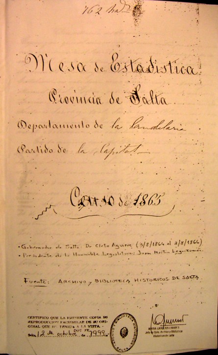 Primer Censo de la Provincia de Salta (Año 1865/66)