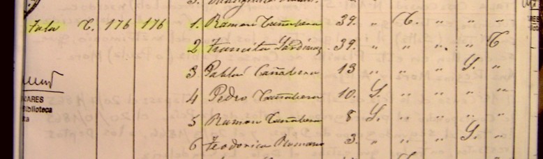 Censo del Tala - Población Rural 1866 - Casa censada nº 176 - Flia. Cañavera - Figura en primer lugar Ramón Cañavera (casado con Tránsito Sardina) - Tío abuelo de Lola Mora - fue la persona que le dió el "Bautismo de Socorro" en noviembre de 1866 en la finca del Tala donde nació la artista. Dicho "Bautismo de Socorro" consta en el Acta Bautismal (segundo bautismo, o bautismo de óleo y crisma) emitida el 22 de junio de 1867.