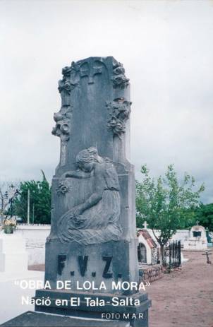 4) Desde 1931 en el Cementerio de la Santa Cruz (Barrio Portezuelo de la ciudad de Salta) descansan los restos del hermano menor de Lola Mora - Romualdo Mora- lugar donde a la vez están los querubes o angelitos (autoría de Lola Mora) que ornamentan el mausoleo donde reposan los restos de otra salteña famosa - Benita Campos (maestra . periodista y escritora) - su gran amiga en esta ciudad - que en 1918, en el acto por el "Día del Arbol" (29 de agosto) invitó a Lola Mora y al estudiantado, al plantado de árboles que lucen en el entorno de la Escuela Normal de Maestras "Dr. Manuel Belgrano" donde Lola Mora cerró el acto prometiendo realizar el busto de su ilustre comprovinciana Juana Manuela Gorriti -Primera escritorra argentina y latinoamericana.