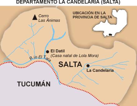 La ilustre artista universal Dolores Candelaria Mora Vega de Hernández conocida como Lola Mora, nació en El Tala -Departamento La Candelaria (Salta)- el 17 de Noviembre de 1866.