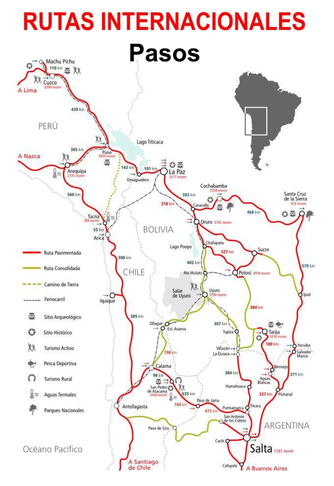 Desde la RN 34 a los 99 Km. de Gral. Güemes, en la localidad de Pichanal (Salta), nace la RN 50 hacia Aguas Blancas. De aquí sólo restan 2 Km. para llegar el puente internacional que une Argentina con Bolivia. Ya en el país vecino el camino conduce a Padcaya y Tarija.