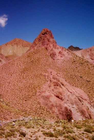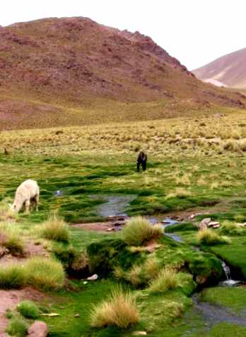 Saliendo de San Antonio de los Cobres llegamos a Santa Rosa de los Pastos Grandes al pié del volcán Quevar (cumbre nevada de 6.200 mts. con santuario incaico de altura).