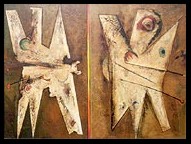 Roberto Gimenez : Nace en Salta en 1957. Realiza sus estudios secundarios en el Centro Polivalente de Arte, del que egresa como Maestro Nacional de Dibujo. En la Universidad Nacional de Tucumán cursa estudios que deja inconclusos y se recibe de Profesor Nacional de Dibujo en el Instituto Nacional de Profesorado de Arte de Salta, institución en la que se desempeñó como profesor de Dibujo hasta que se cierra la carrera de Artes Plásticas en los primeros años del 2000. Desarrolla, a su vez una intensa labor docente como profesor de Dibujo o de Pintura en el Centro Polivalente de Arte y en el bachillerato artístico de la Escuela Provincial de Bellas Artes "Tomás Cabrera". También dicta cursos específicos de dibujo y pintura, asistiendo a su vez a otros que se entroncan con su accionar docente, a fin deperfeccionar sus métodos de enseñanza. Si bien alcanza la abstracción, alejándose de la realidad en la representación formal, sigue íntimamente comprometido con ella, y sobre todo con la realidad latinoamericana para luego retornar al  naturalismo en el cual trabaja nuevamente a la figura humana como en sus primeros tiempos. Surgen cuerpos desnudos, torturados, que cuelgan y se enroscan, con rostros apenas esbozados, especies de máscaras con grandes cuencas, o estructuras esféricas atravesadas por vendas. Todo es alegoría, símbolo en un espacio claustrofóbico que se aplana y comprime, contrastando con el fuerte trabajo de volumen de los cuerpos, dentro de una paleta parca, con predominio de la gama de los fríos. Esta iconografía connota los desgarradores mundos de Munich por una parte y la fuerza transgresora del neo expresionismo, por la otra. Más Información...
