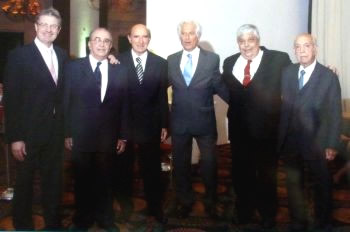 En foto 2 (de izquierda a derecha): Dr. Nicoli (Bs. As.), Dr. Aldo Pulido (Salta), Dr. Cánepa (Presidente del Congreso), Dr. Ploktin (Bs. As.), Dr. Oscar Mayo (Presidente de la Sociedad Arg. de Oftalmología), Dr. Carlos Gordillo (Tucumán). Foto cedida gentilmente por el entrevistado.
