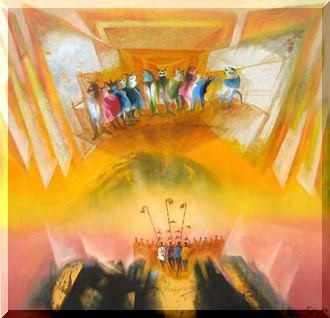 Pasaron 53 años y en vuelo regresivo veo los ternas que en mi pintura fueron constante. Precipicios horizontales como la mirada frente al espejo. Perspectiva aérea como la visión del cóndor. Vuelo rasante sobre las cosas y los cuerpos.